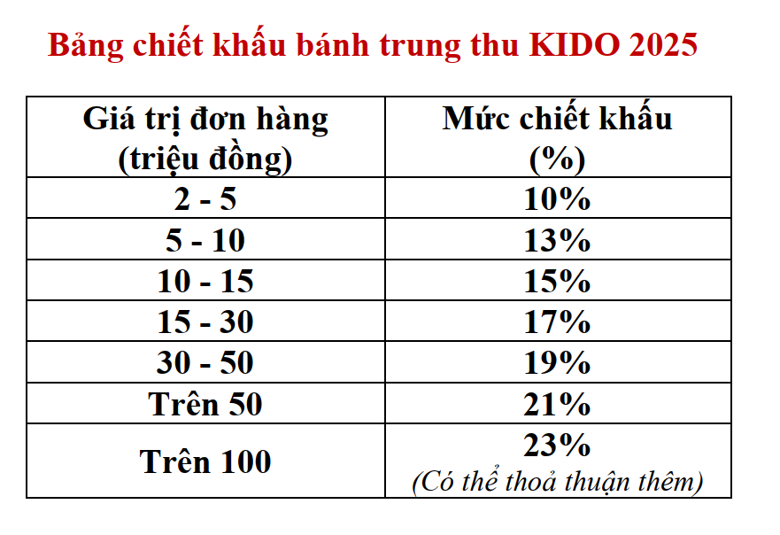 * Chiết khấu bánh trung thu KIDO Bakery 2025: