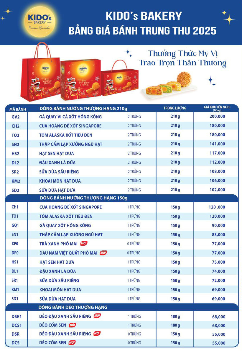 * Bảng giá bánh trung thu KIDO Bakery 2025 (đã có VAT):
