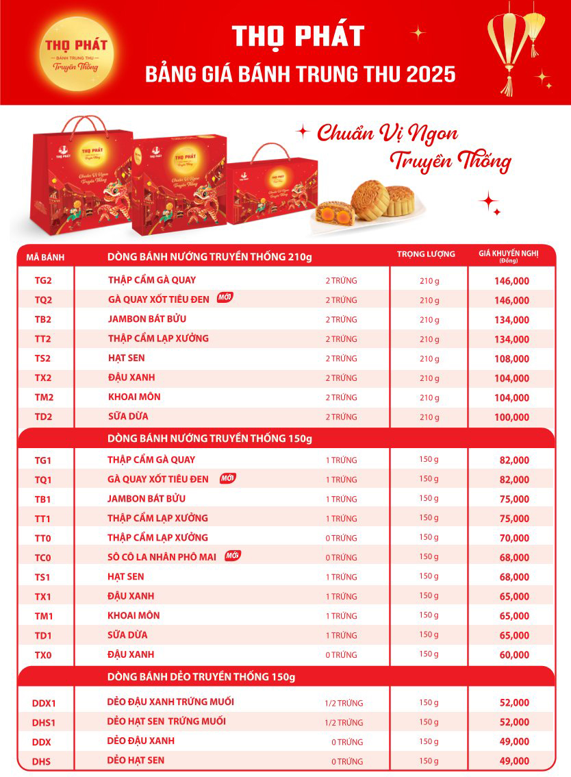 * Bảng giá bánh trung thu THỌ PHÁT 2025 (đã có VAT) - THƯƠNG HIỆU MỚI CỦA KIDO: