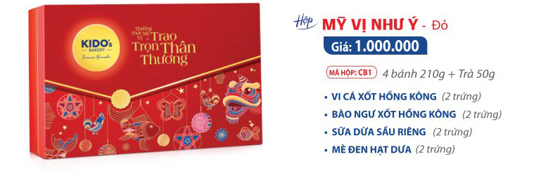 2, Hộp bánh trung thu cao cấp Kido - MỸ VỊ NHƯ Ý đỏ: giá 1.000.000 VNĐ gồm 4 bánh x 210gr + 1 hộp trà 50G
